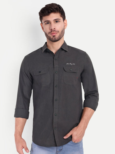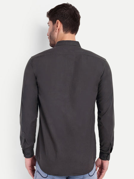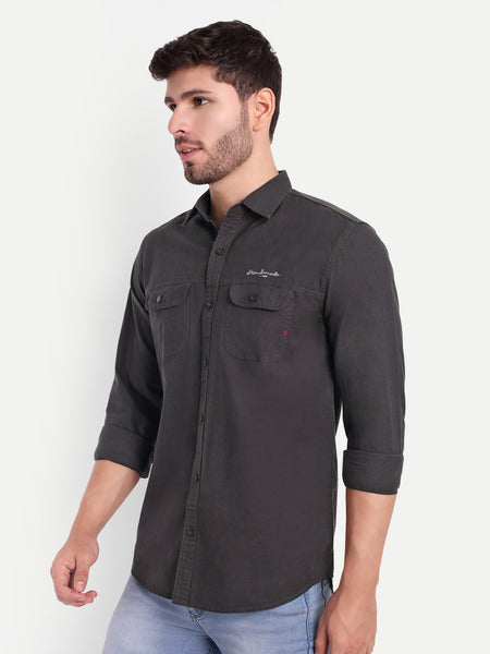 Dark Grey Solid Cargo Shirt