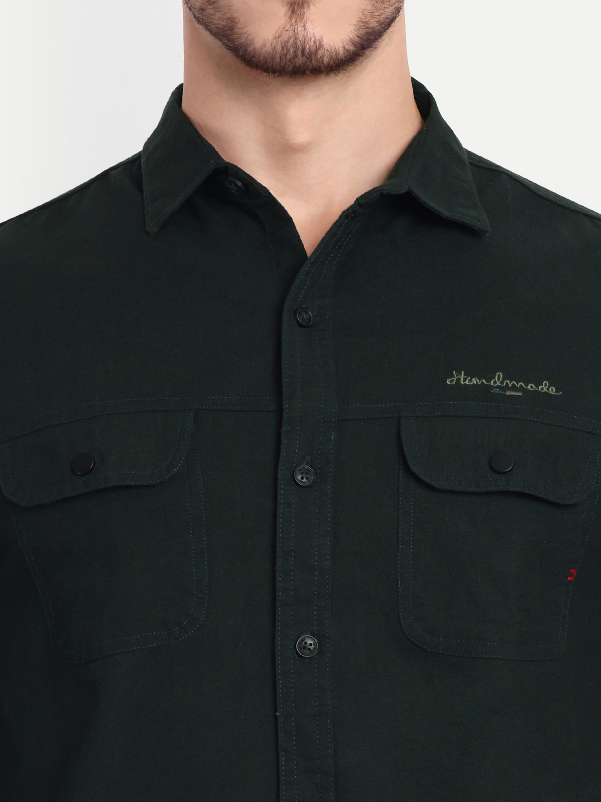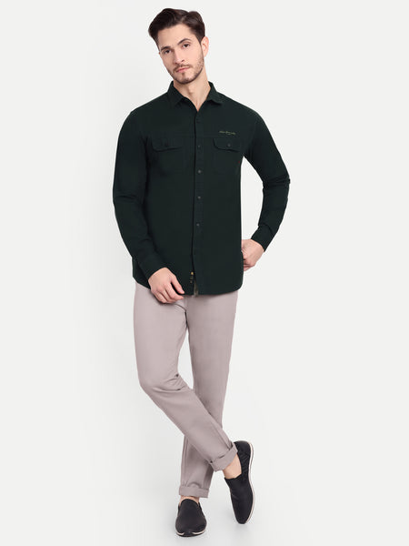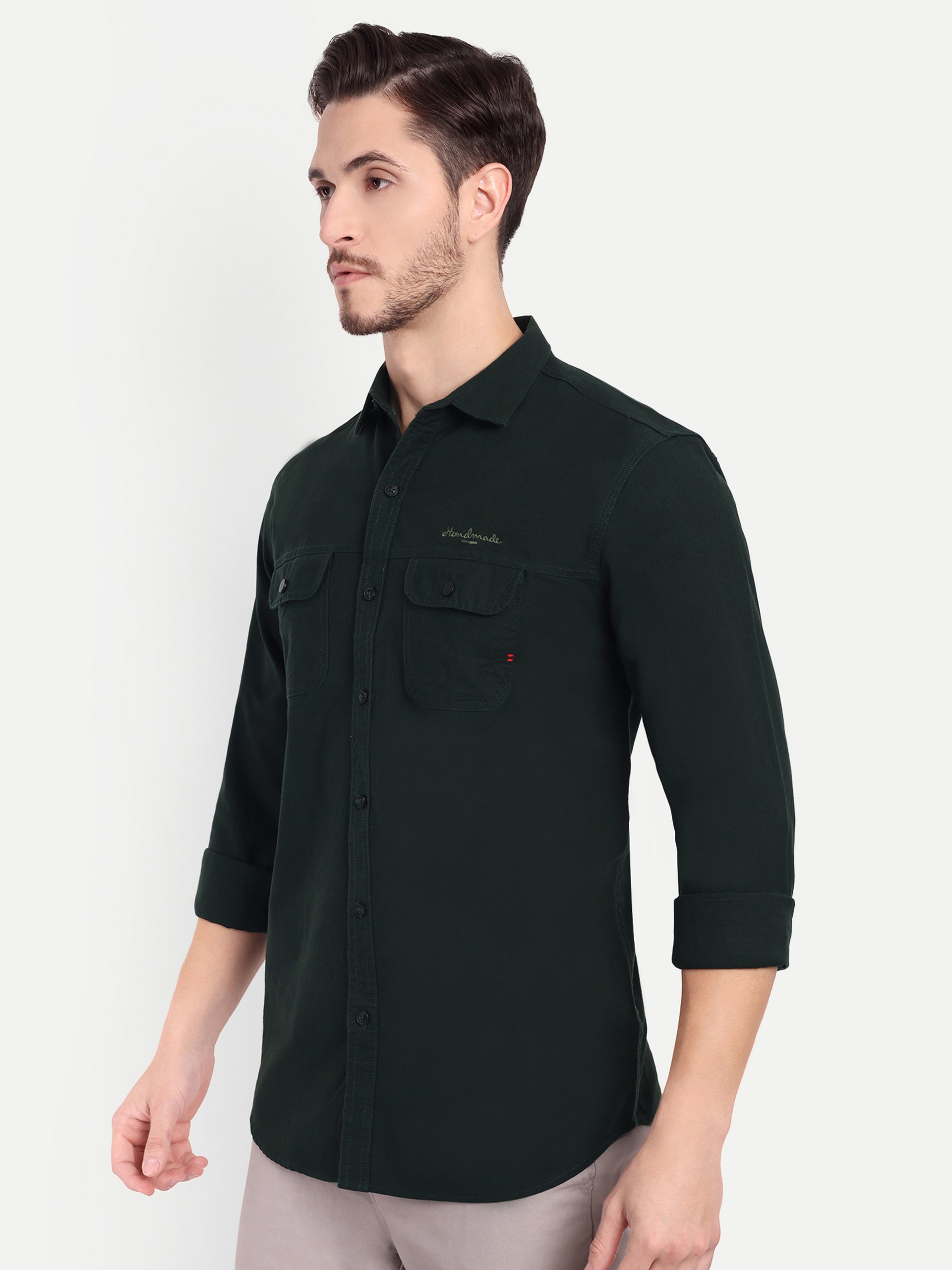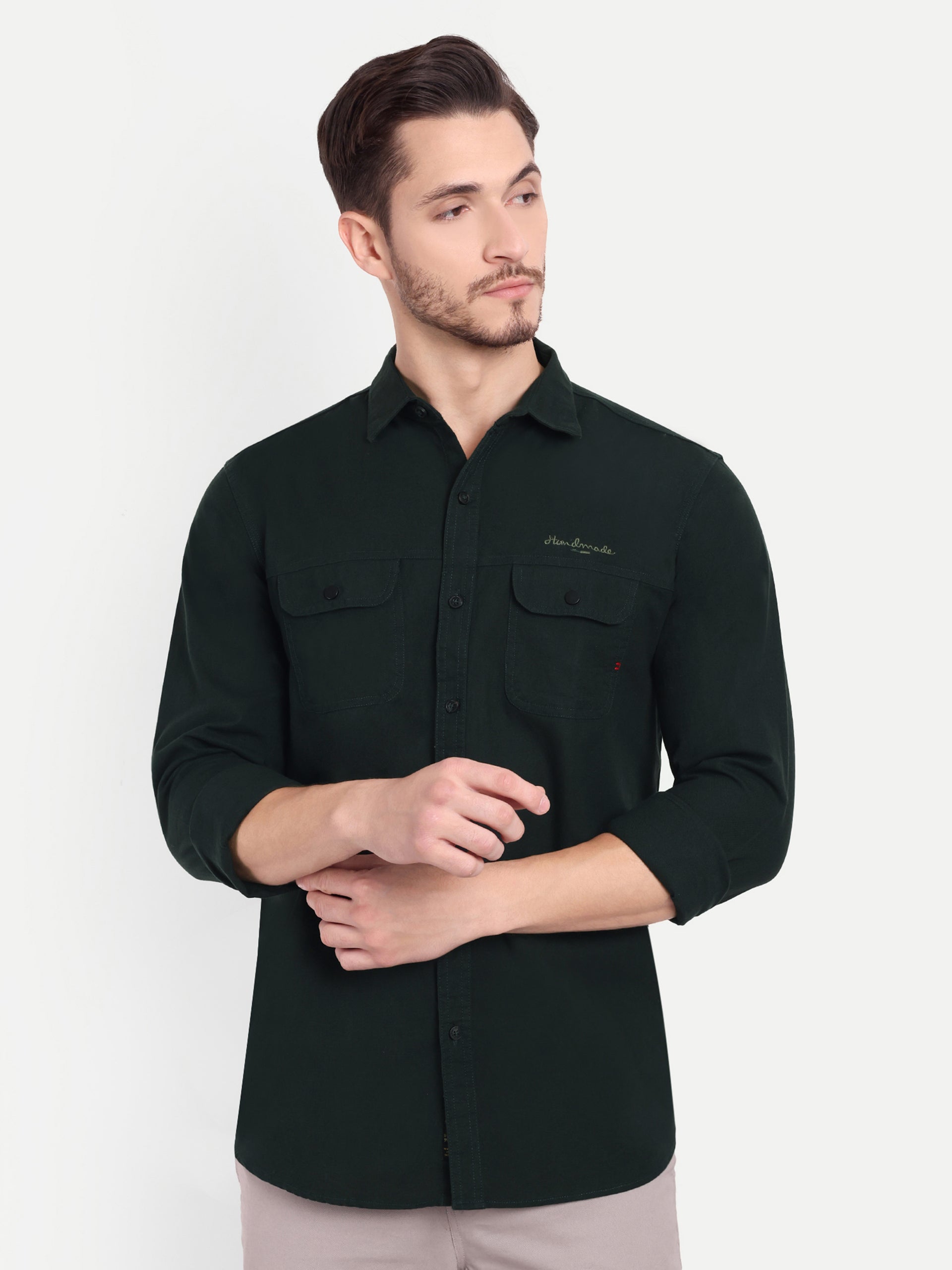 Embrace sophistication with our Dulquer collection. Tailored to perfection, this shirt exudes refined charm and impeccable craftsmanship. Product Details: Color: Green Pattern: Solid Double Pocket Fit: Trim Fit Occasion: Casual Wash Care: Machine wash in...