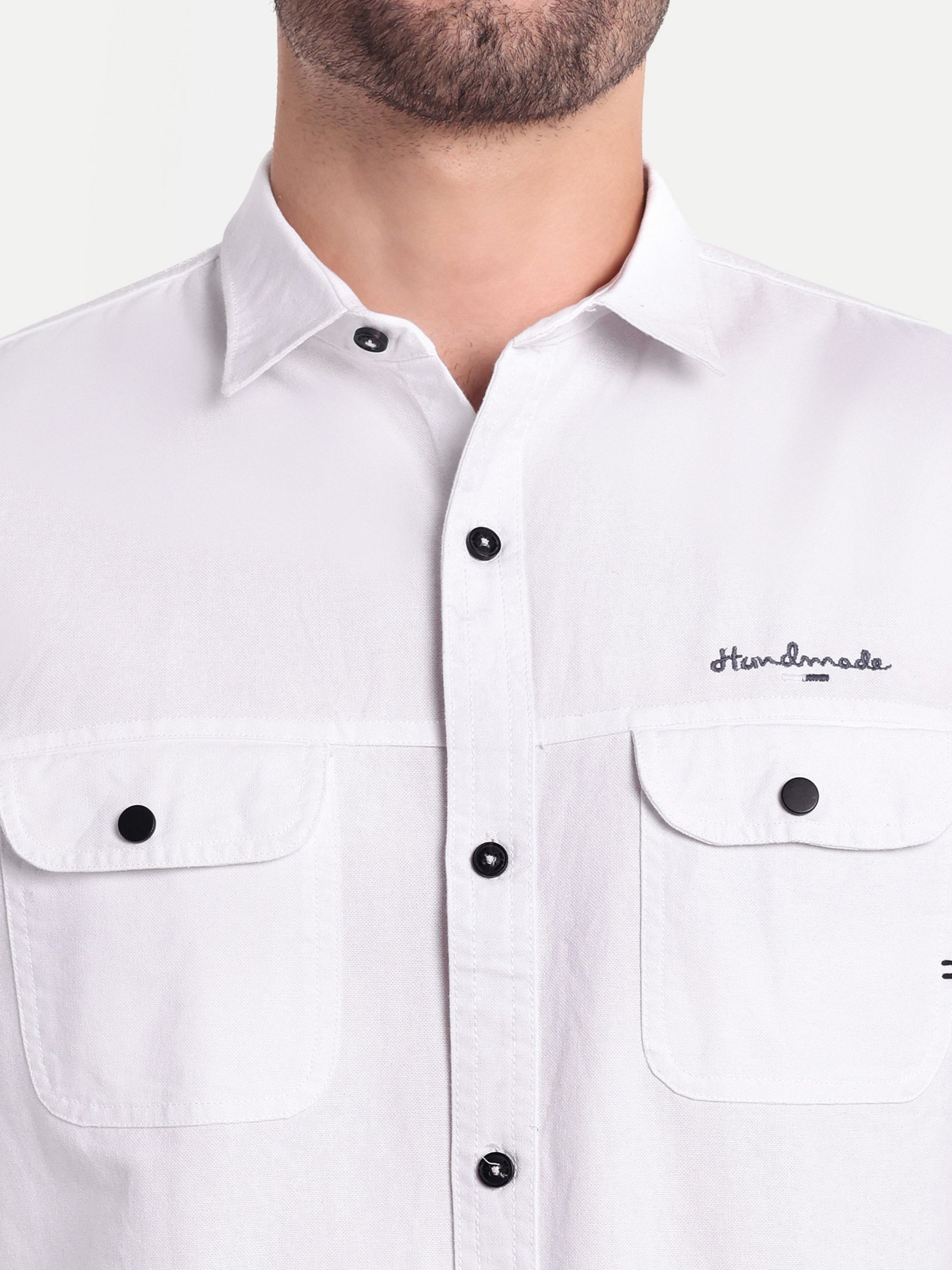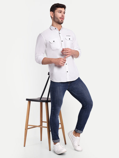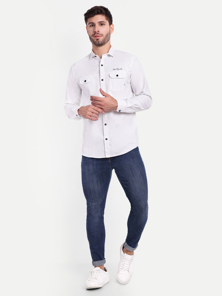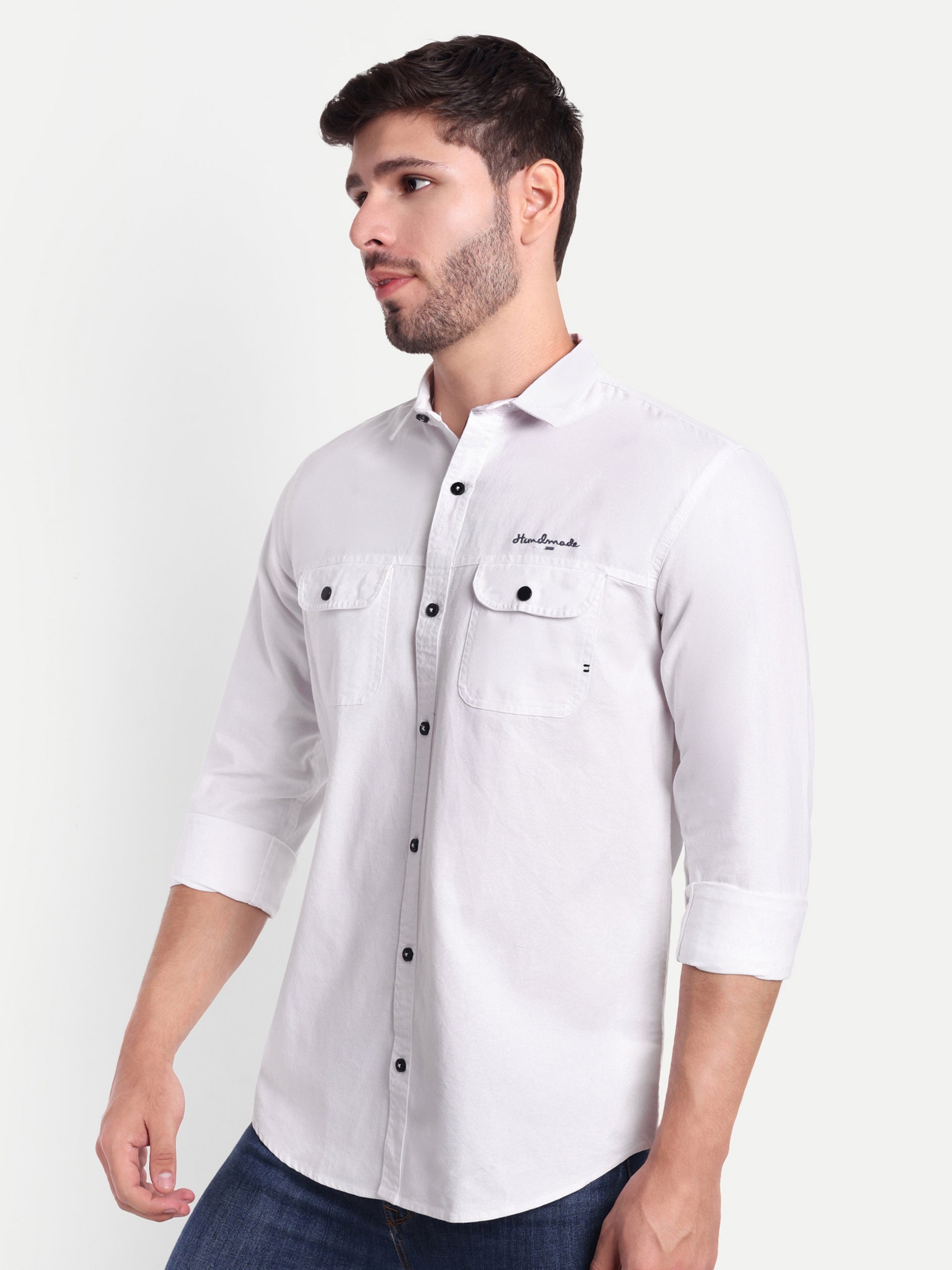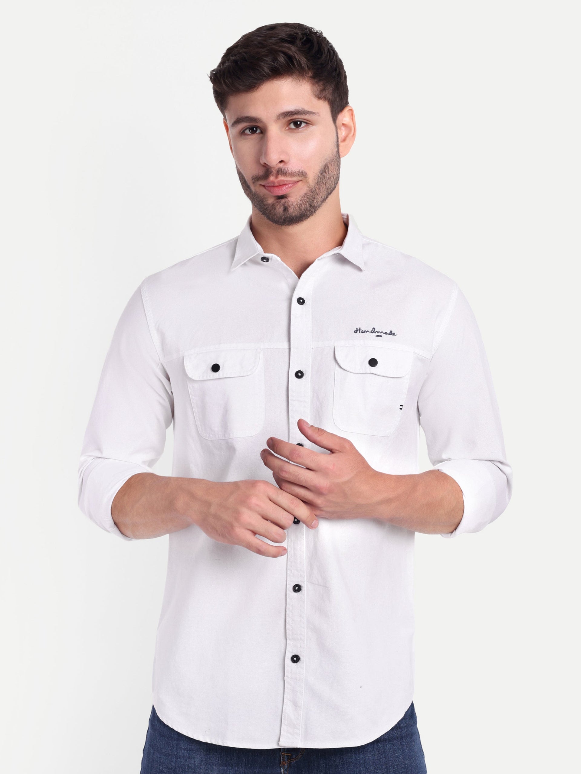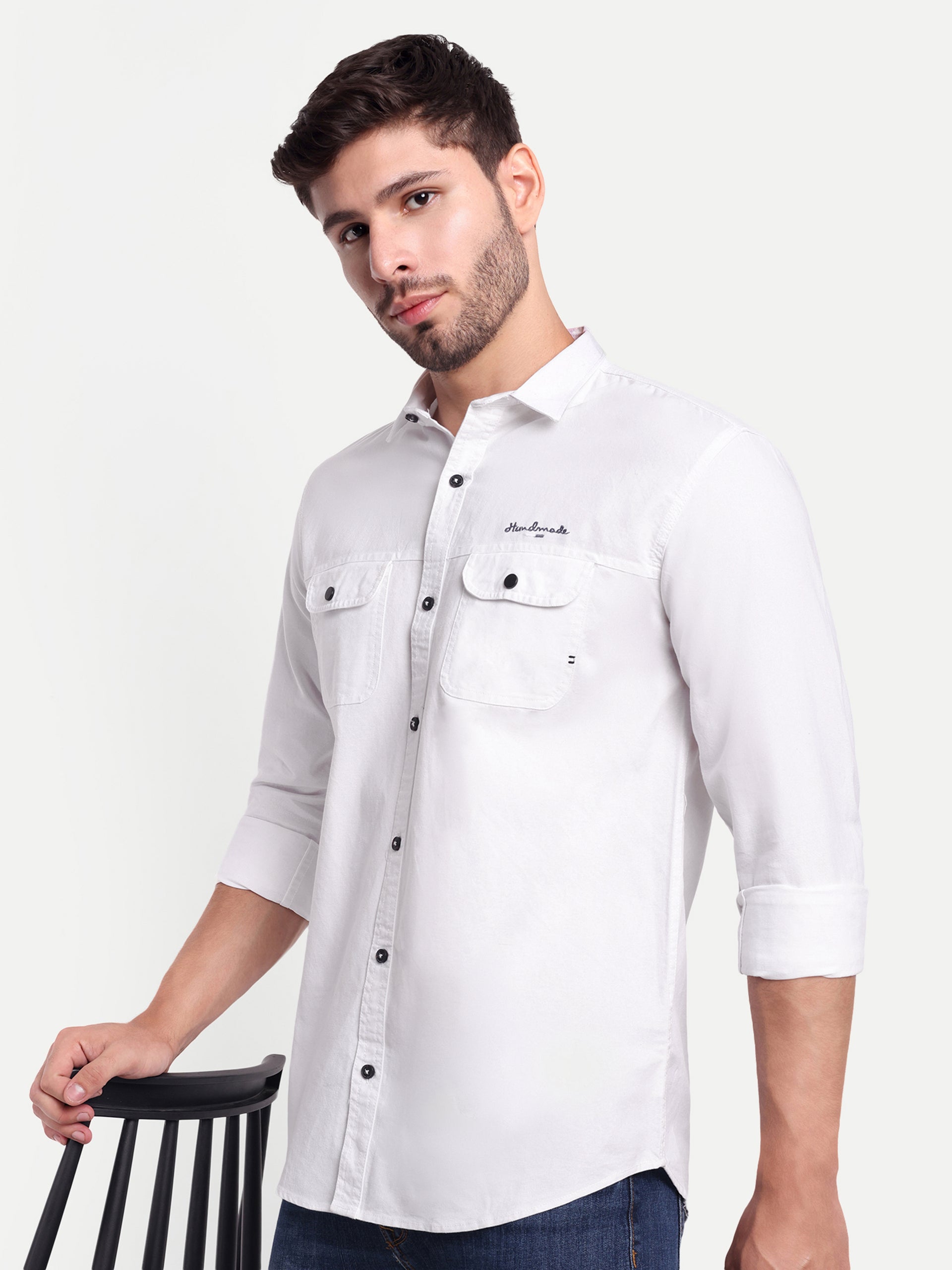 Embrace sophistication with our Dulquer collection. Tailored to perfection, this shirt exudes refined charm and impeccable craftsmanship. Product Details: Color: White Pattern: Solid Double Pocket Fit: Trim Fit Occasion: Casual Wash Care: Machine wash in...